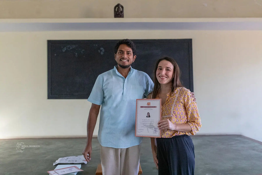 L’année suivante (2023) je retourne au shala de Vijay Kumar (Ashtanga Saadhana) et en janvier 2024 je suis diplômée suite à ma participation au Ashtanga Vinyasa Yoga Teacher Training Course.